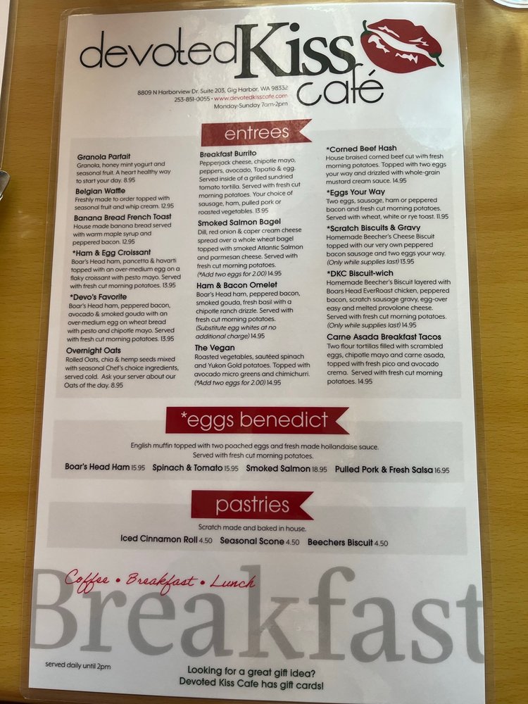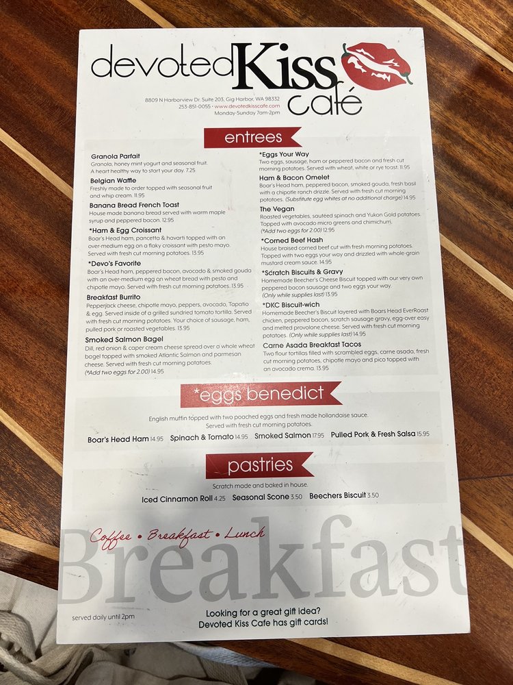 Welcome to Devoted Kiss Cafe, a charming breakfast and brunch spot located at 8809 N Harborview Dr, Gig Harbor, WA. Known for its delightful sandwiches and cozy ambiance, this cafe offers an inviting experience that keeps customers coming back for more. With beautiful harbor views and outdoor seating, it’s perfect for a leisurely meal.